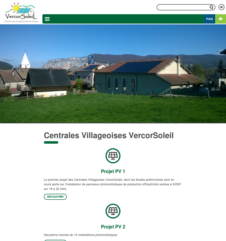 Nous sommes intervenus auprès de Auvergne Rhône-Alpes Énergie Environnement pour la refonte du site Web de l'association des Centrales Villageoises. Le projet se composait en deux lots. Le premier correspondait à la présentation de l'association et sa démarche ainsi qu'un espace en ligne pour les membres afin d'accéder à différents outils comme un forum et une documentation. Le second lot comprenait une usine à sites afin de donner la possibilité à chaque société, membre de l'association, d'avoir accès à un espace en ligne indépendant. Une synchronisation entre le site principal et les sous-sites permet un partage de fichiers ainsi qu'un partage d'actualités et d'événements.